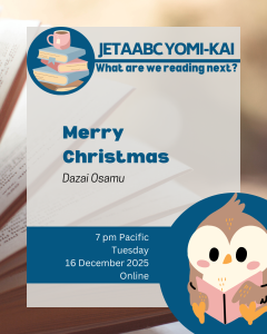 JETAABC Yomi-Kai is a reading club established in September 2020 to discuss and discover short stories by Japanese Authors in translation or by Japanese diaspora authors. Whether you are a JET Alumni, community member, Japanese literature enthusiast, or someone who simply wants to get back into reading, anyone is welcome.